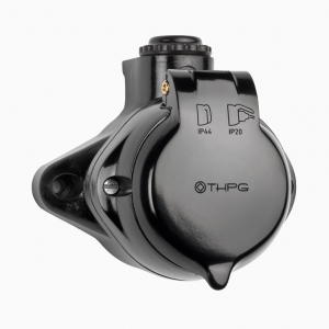 Indkapslet, udenpåliggende stikkontakt til brug i kælder, udestue eller lignende. Godkendt til IP44 med låget lukket, IP20 med stik sat i. Låget er fjederbelastet og lukker automatisk.