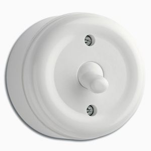 Hvide afbrydere med vippe eller drejeknap og stikkontakter til udenpåliggende montering (til udenpåliggende kabelføring, også kendt som kulo-montage). Her finder du vores sortiment i hvid duroplast, som generelt kaldes "hvid bakelit". Duroplast er en fiberarmeret hærdeplast og er derfor nært beslægtet med bakelit. Lampetryk og stikkontakter i hvid bakelit var mest almindelige, da funktionalismen slog igennem, og vi finder derfor forlæg i hjem fra 1930’erne, 1940’erne og 1950’erne.