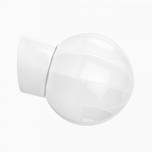 Forlægget til glasset findes i forskellige udgaver med små variationer, ofte i miljøer som opgange og forhaller fra begyndelsen af 1920'erne og frem. Vores forlæg er sandsynligvis fremstillet på Rosdala glasværk, som ligger i det smålandske glasrige og var specialiseret i lampeskærme med produktion helt frem til 2001. Glasværket er nu fredet. Med sin form, der minder om appelsinbåde, hører den stilhistorisk hjemme i Art Deco og ses også i 1930'ernes og 40'ernes miljøer i overgangen til funktionalismen. Globen passer til alle porcelænssokler til både indendørs brug, vådrum og udendørs montering. Produceret af og for Byggfabriken, sælges eksklusivt hos Byggfabriken.