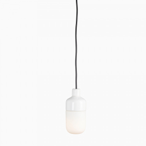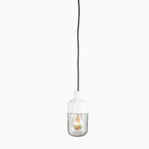 Hvidglaseret loftslampe til udendørs brug med mat opalhvidt glas. 3 m sort gummiledning med stikprop. G9. Diameter: 98 mm. Højde: 155 mm. Farve svarer til NCS S1502-G50Y. Lyskilde medfølger ikke.