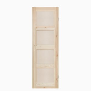 Som standard leveres dørene med en traditionel 3-, 4- eller 5-fyldning i modulmål. Vi bruger en vendbar låsekasse 2014, inklusive nøgle. Låsekassen kan også bruges til at montere toiletlås. Karmen og dørbladet udstyres med traditionelle stabelhængsler i elforzinket stål. Karmen er lavet af fyrretræ, og dørtrinslisten fremstilles af eg. Karmdybden er 92 mm.